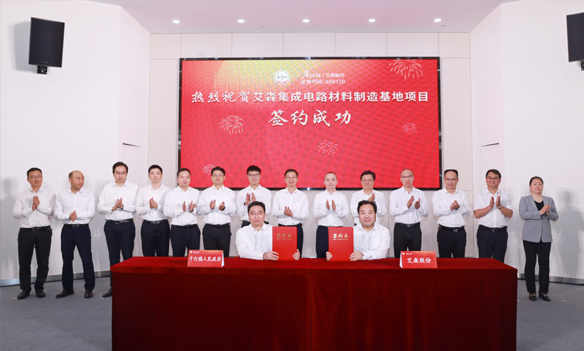 5月20日,千燈鎮(zhèn)政府與艾森股份暨艾森股份集成電路材料制造基地項目進行簽約儀式。市委書記周偉先生,江蘇艾森半導(dǎo)體材料股份有限公司董事長張兵先生共同見證簽約,副市長錢許東先生參加活動。