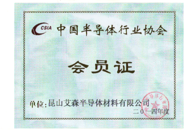 昆山艾森半導(dǎo)體材料有限公司成為昆山市半導(dǎo)體行業(yè)協(xié)會副會長單位。